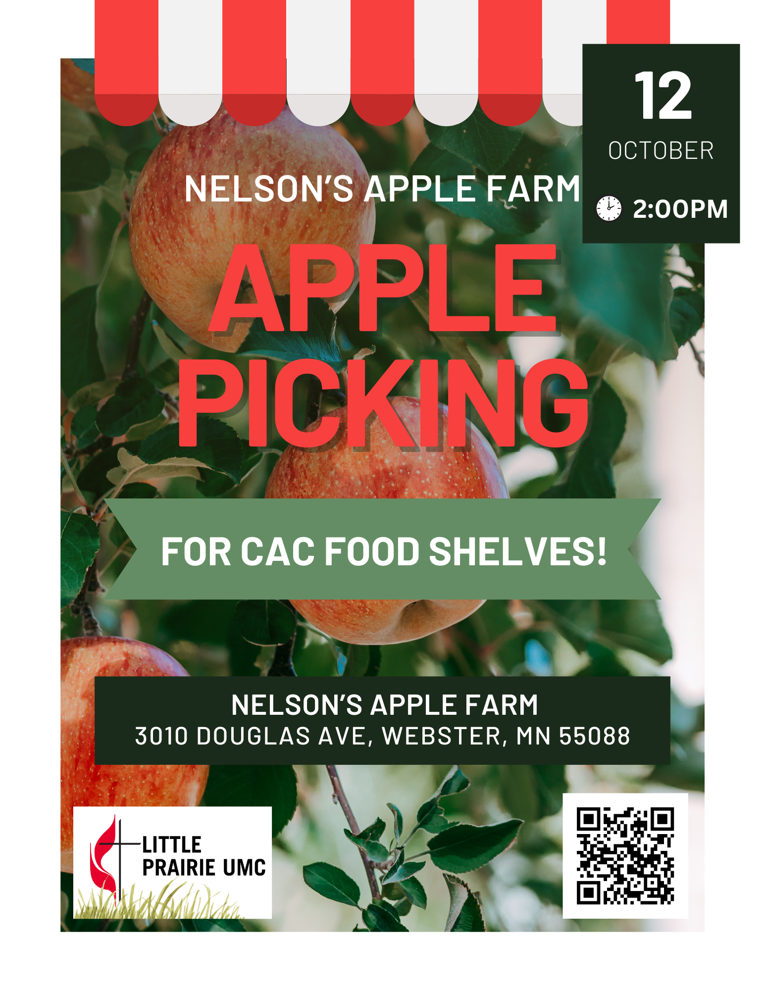 Join the Little Prairie UMC family as we go apple picking at Nelson’s Apple Farm for CAC food shelves. This is a mission event.
